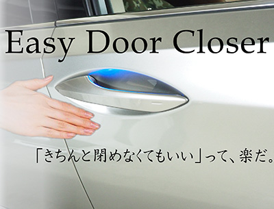 ドアクローズの際の車体への衝撃や騒音問題を解決する、みんなにやさしいカスタマイズ。半ドアの状態から自動的にドアを引き込みロックします。