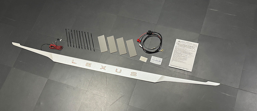| 内容物 | 未塗装ガーニッシュ×1、灯体×1、電源取出しハーネス×1、結束バンド×10、導光レンズ×1、クッションテープ×4、 ブチルシール×1、コネクタ×1、PACクリーナー×1、灯体遮光フィルムシート×1、PAC プライマー×1 グロメット×1、製品保証書×1 | ||||