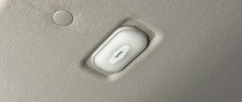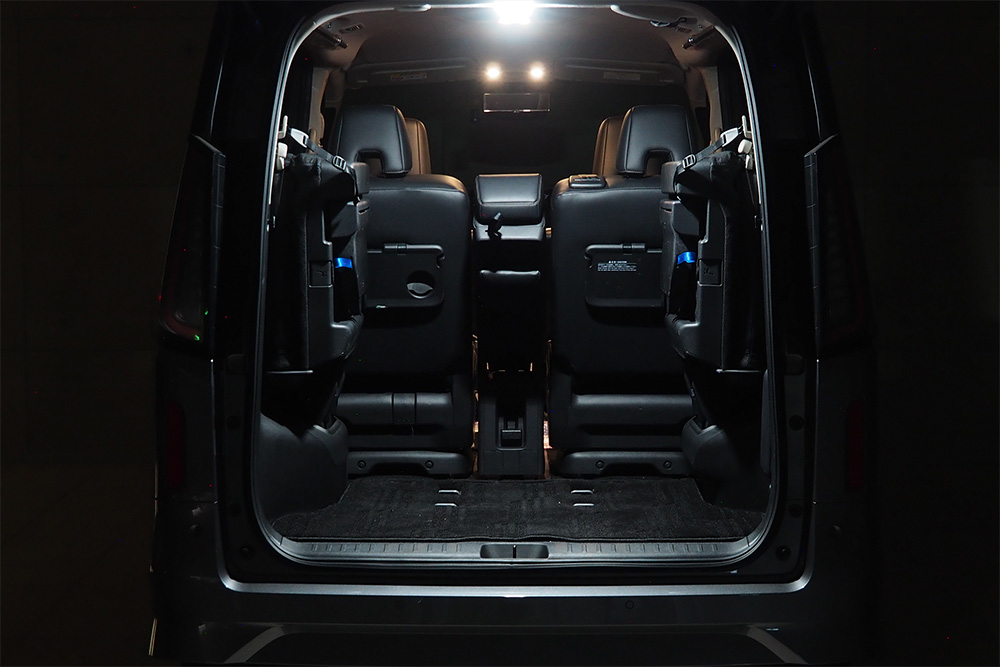 Junack独自開発した専用の樹脂素材で取り付け断面視180°以上の配光で車内全体に光が行き渡るようになります。